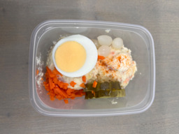 Huzarensalade met ei,wortel,ui,augurk,mayonaise